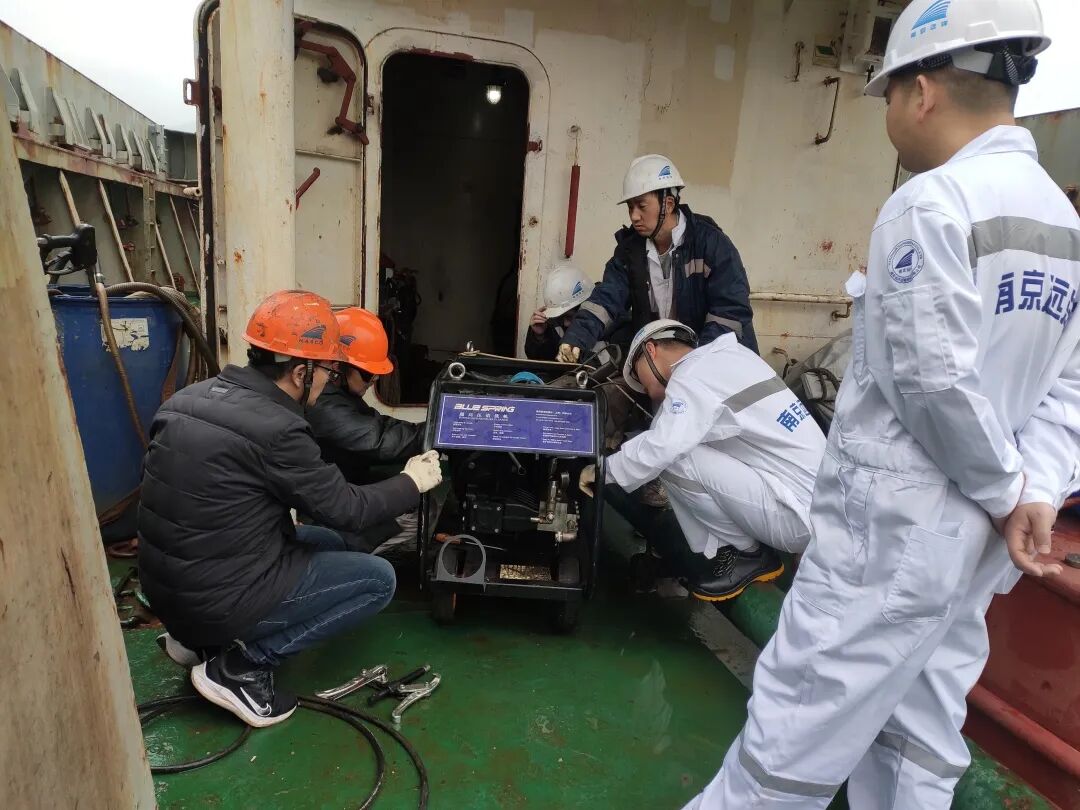 On April 3, 2023, the BLUESPRING engineering team was invited aboard the vessel Nanjing Yuan Yang Pearl to provide technical guidance and cleaning services for the use of marine high-pressure cleaning machines.