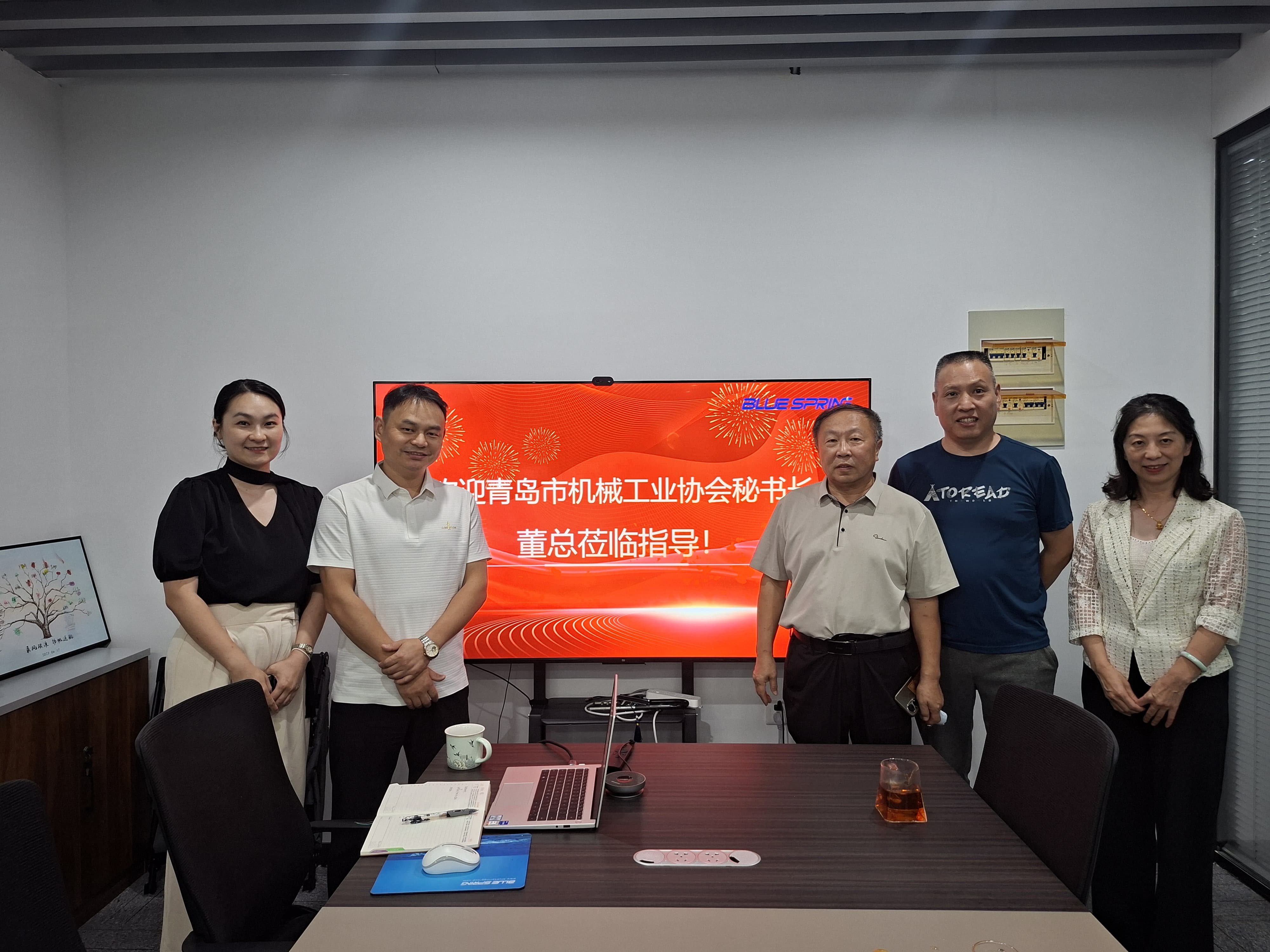 On October 10, 2025, Mr. Dong Zhiqiang, Secretary-General of the Qingdao Machinery Industry Association, led a delegation to visit BLUESPRING GROUP’s subsidiary, Qingdao Bluespring Ansen Technology Co., Ltd. (hereinafter referred to as “Bluespring Ansen”) for an exchange and inspection. Mr. Zhou Dan, General Manager of Bluespring Ansen, and the company’s leadership team warmly welcomed the visitors. The visit aimed to strengthen government–enterprise communication and cooperation, and to explore new paths for coordinated industrial development.